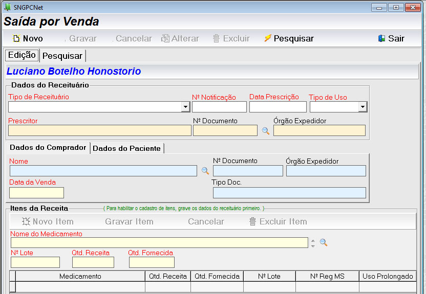 Software para escrituração de medicamentos controlados e antimicrobianos